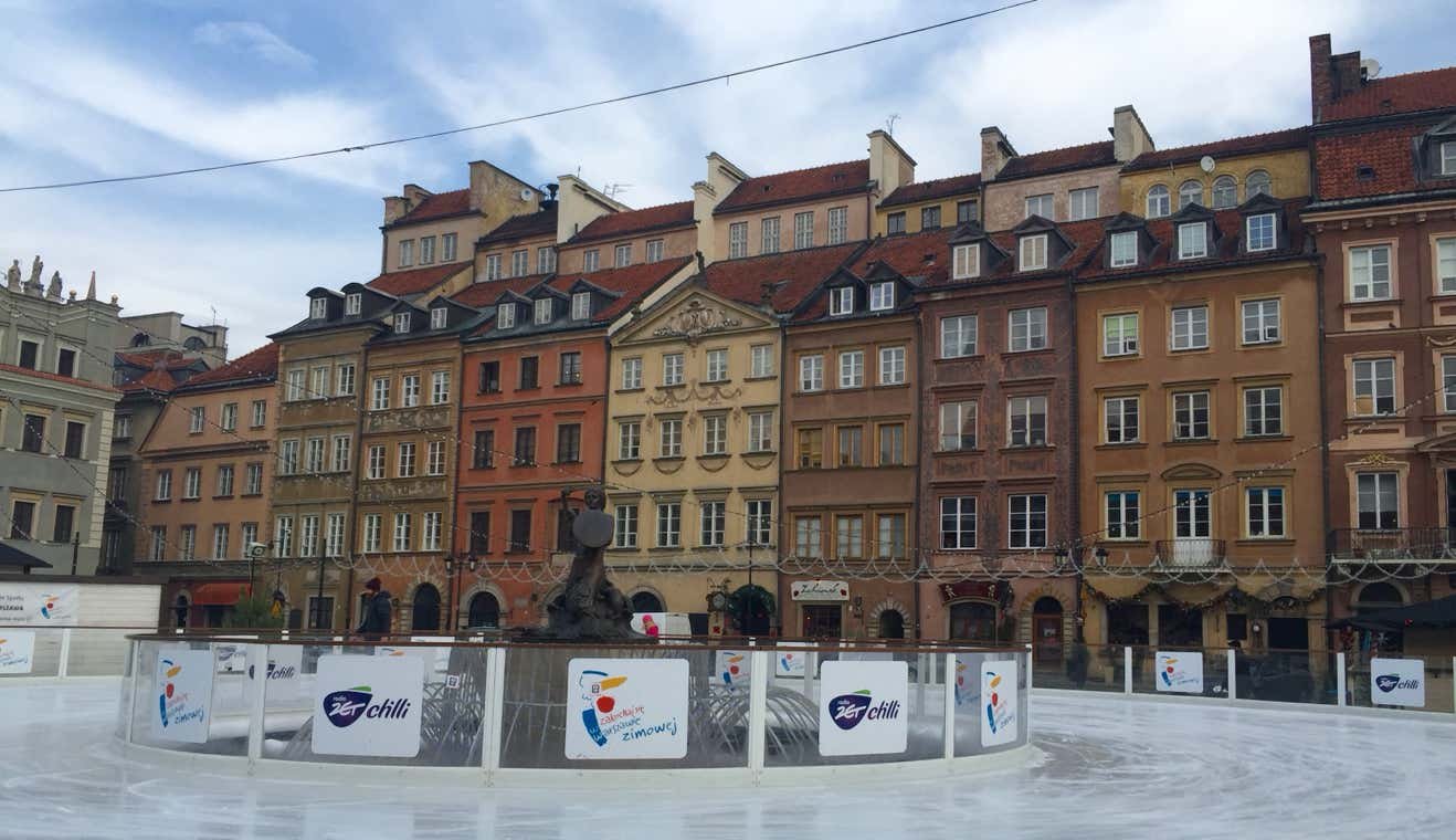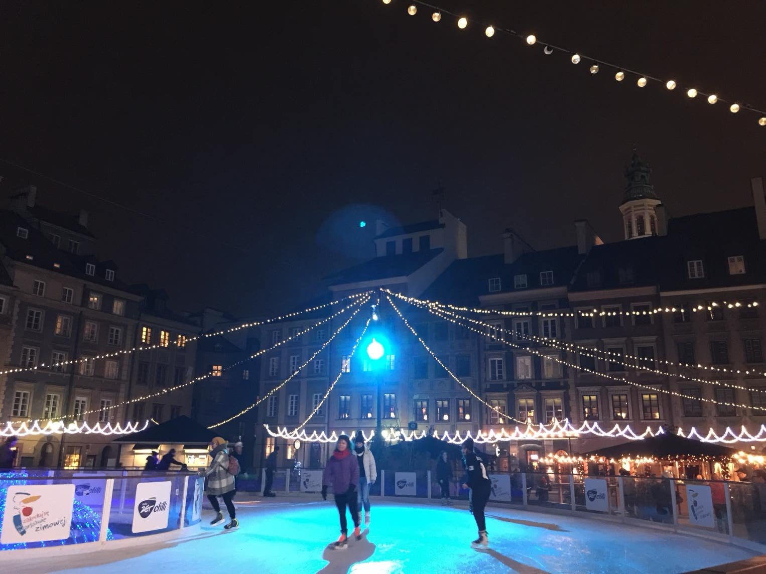La Rynek Starego Miasta est une superbe place qui abrite normalement un marché mais qui est occupée, en ce moment, par une patinoire.