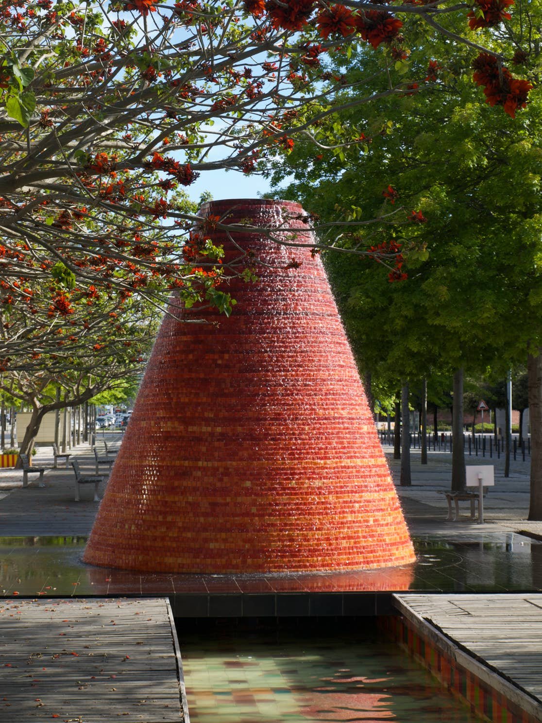 Le Parc est joliment arboré et décoré de fontaines en forme de cône. Très joli et rafraîchissant (quand il fait beau bien sur)