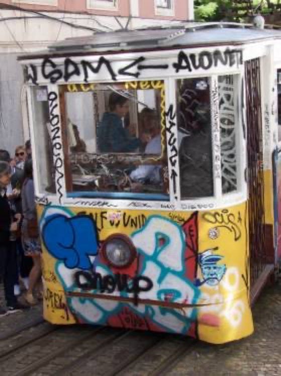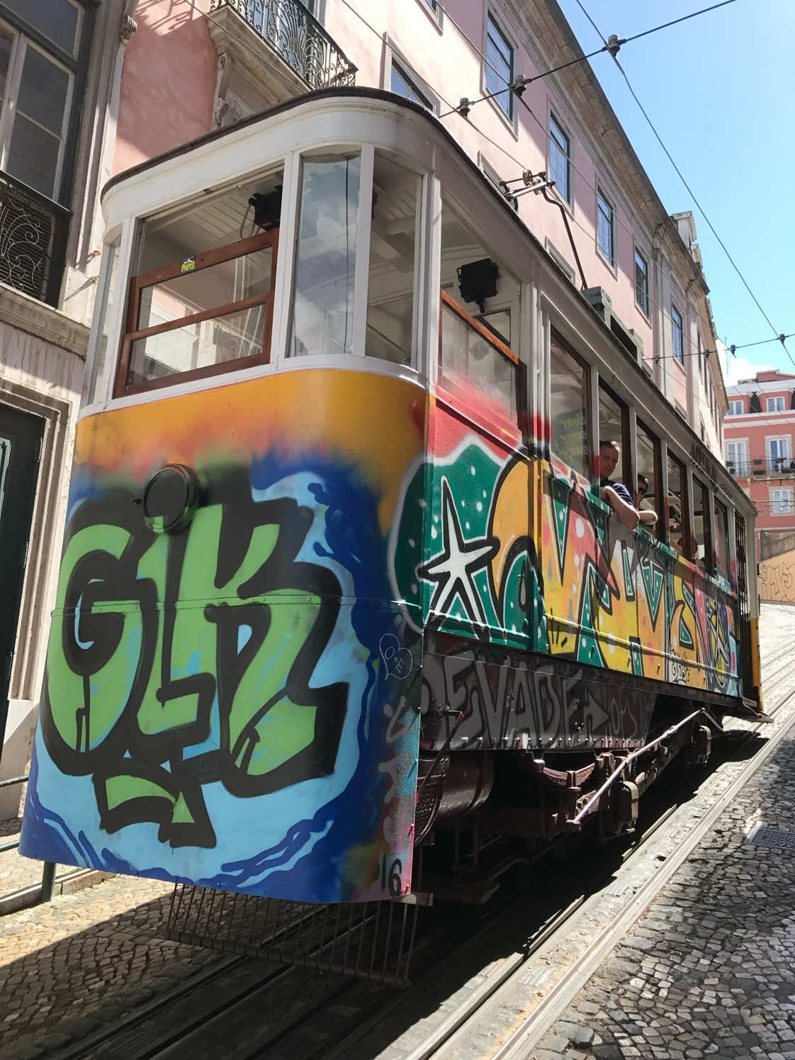 Séquence typique qui, à l'arrivée, offre une superbe vue sur Lisbonne.