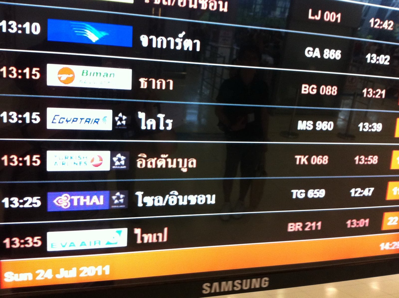 Retard d'une heure également pour le vol pour Bangkok. RAS. Nouveau plateau repas turc. Nouveau raki. Films en français. Moi j'ai préféré la compagnie de Bashung, des Beatles, de Mozart (le Réquiem) et de Pergolesi.