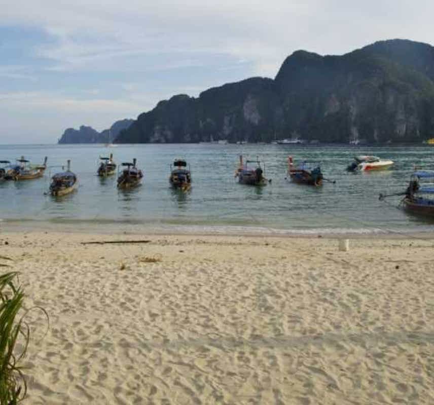 Arrivée en taxi à l'hôtel (400 THB soit moins de 10 euros) avec un chauffeur, prof d'anglais à la retraite, très très bavard. Sympathique et honnête...