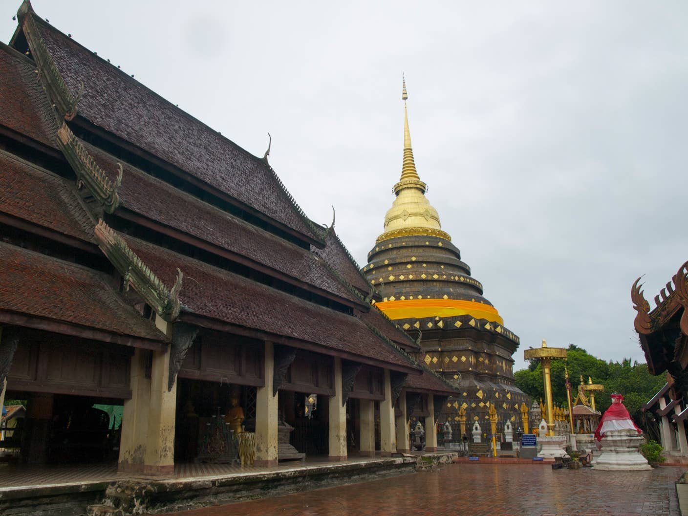 Partons pour Chiang Rai. Avant de quitter Lampang, faisons une courte halte au Wat Phra Lampang Luang, plus beau temple de Thaïlande d'après le GDR. Il aurait été dommage, en effet de ne pas le voir... Sur la route vers le temple, voyons de nouvelles rizières. Avant Chiang Rai, visitons le Temple Blanc. Superbe