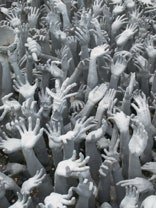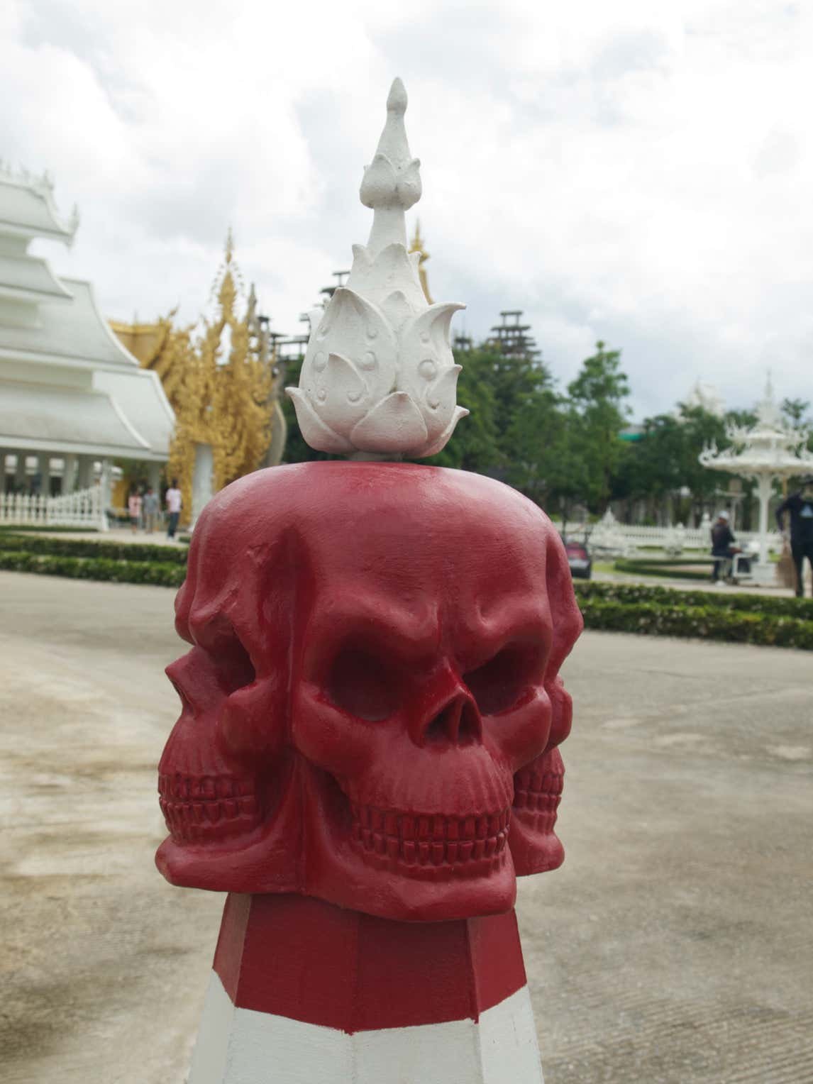 Le White temple est un temple controversé, moderne. Superbe mais avec une atmosphère bizarre. Têtes de morts, têtes accrochées aux arbres, bras surgissant du sol... Quelques photos pour vous faire une idée.