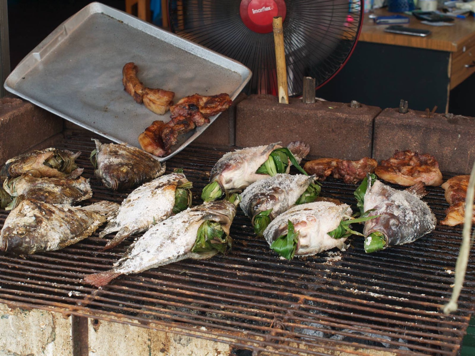 Après Wat Phra Lampang Luang, passons par le Lac Phayao. Y dégustons un très bon poisson local dans un restau fréquenté par les thaïlandais. Amusant car le personnel me demande de les photographier en souriant... Très sympa, très thaïlandais.