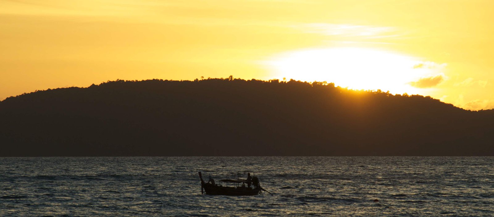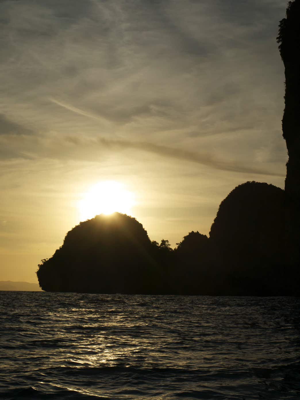 Voyage agréable et arrivée à Koh Phi Phi (île entièrement dévastée par le Tsunami) sous un soleil de plomb.