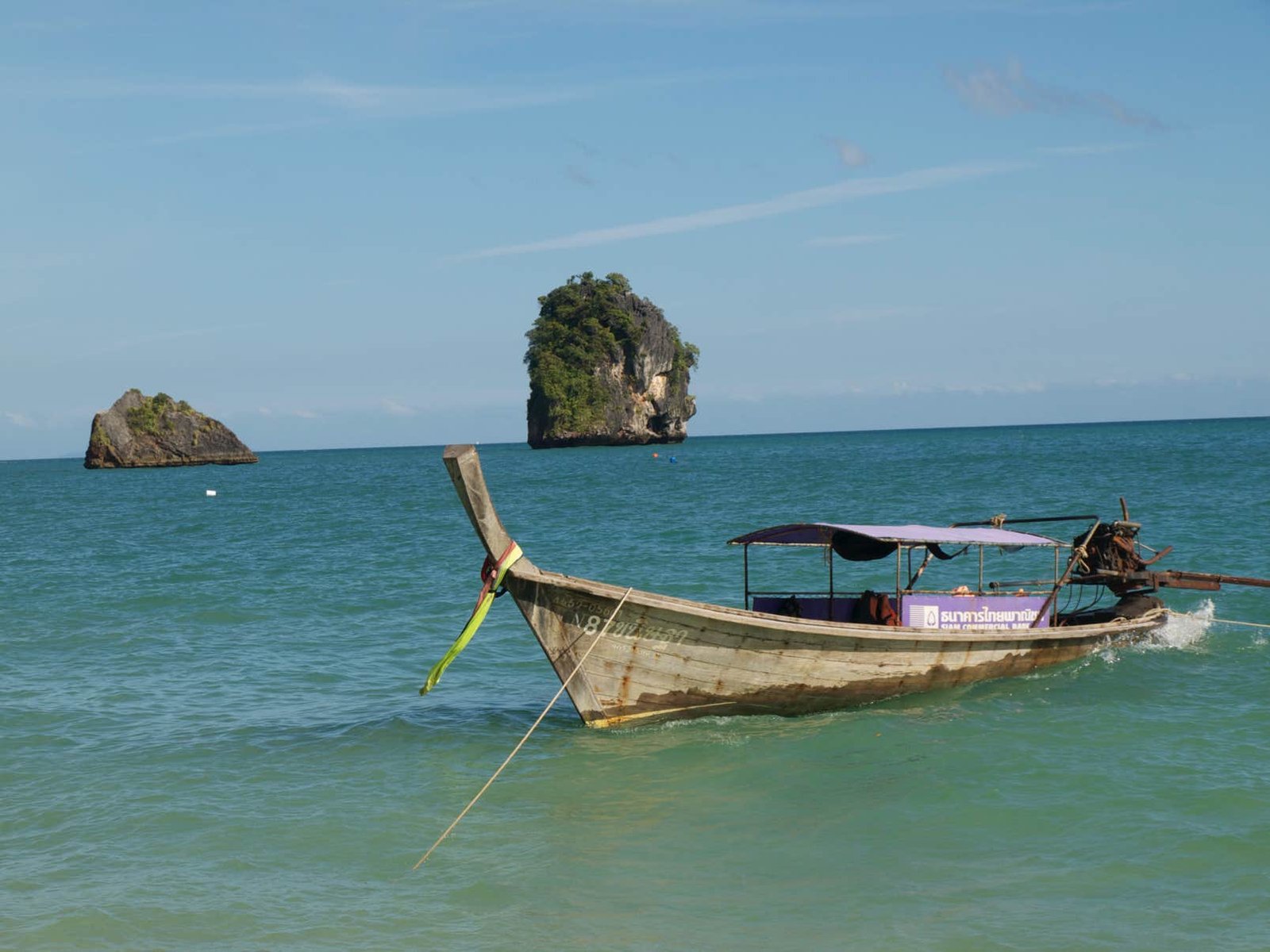 Quittons Krabi pour Koh Phi Phi. Le départ est périlleux avec nos valises que nous devons déposer dans le petit bateau qui va nous amener au Speedboat...