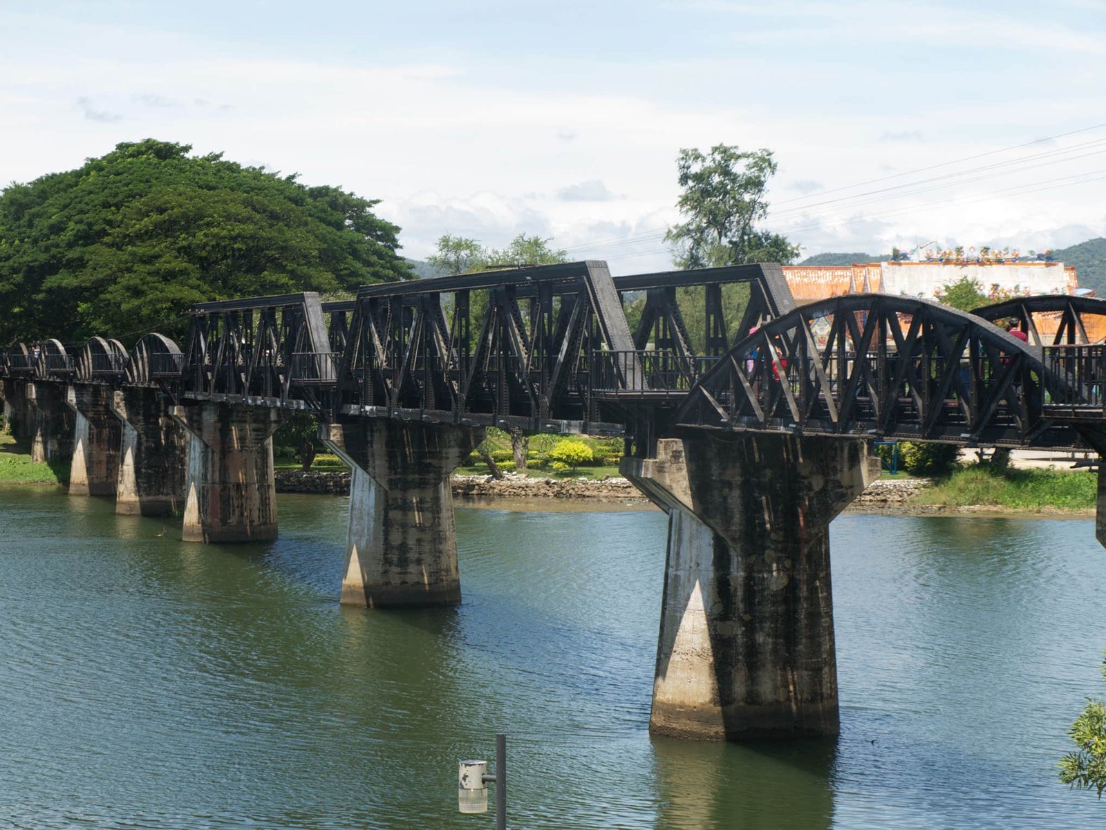 Le Pont, situé à 3 km de Kanchanaburi, est le fruit d'un projet de l'armée nippone de construire une ligne de chemin de fer reliant le Siam à la Birmanie. 30.000 prisonniers occidentaux (US, anglais, australiens et hollandais) et 100.000 travailleurs asiatiques participèrent aux travaux (415 km de ligne). Travail forcé, malaria, tortures firent des milliers de morts. Le Pont fut détruit en 1945 par les alliés.