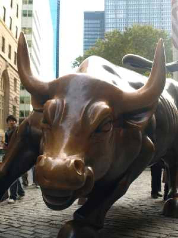 Symbole de la puissance financière: l'immense taureau en bronze qui se dresse à proximité de la place boursière la plus connue au monde